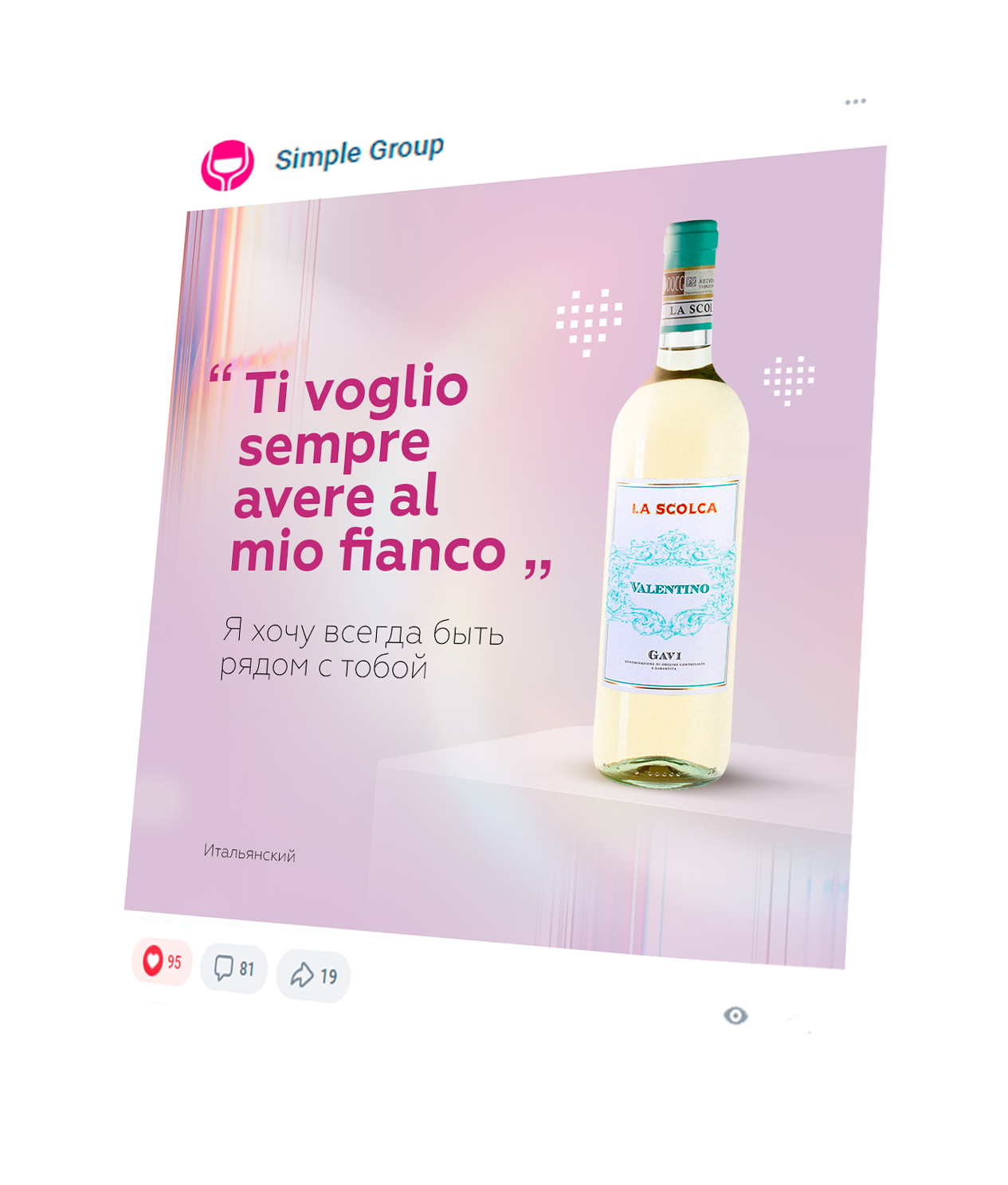 On Valentine’s Day we created an emotional and original post in which wine products confessed their feelings for the audience in their native language (ERR on VKontakte - 22%).