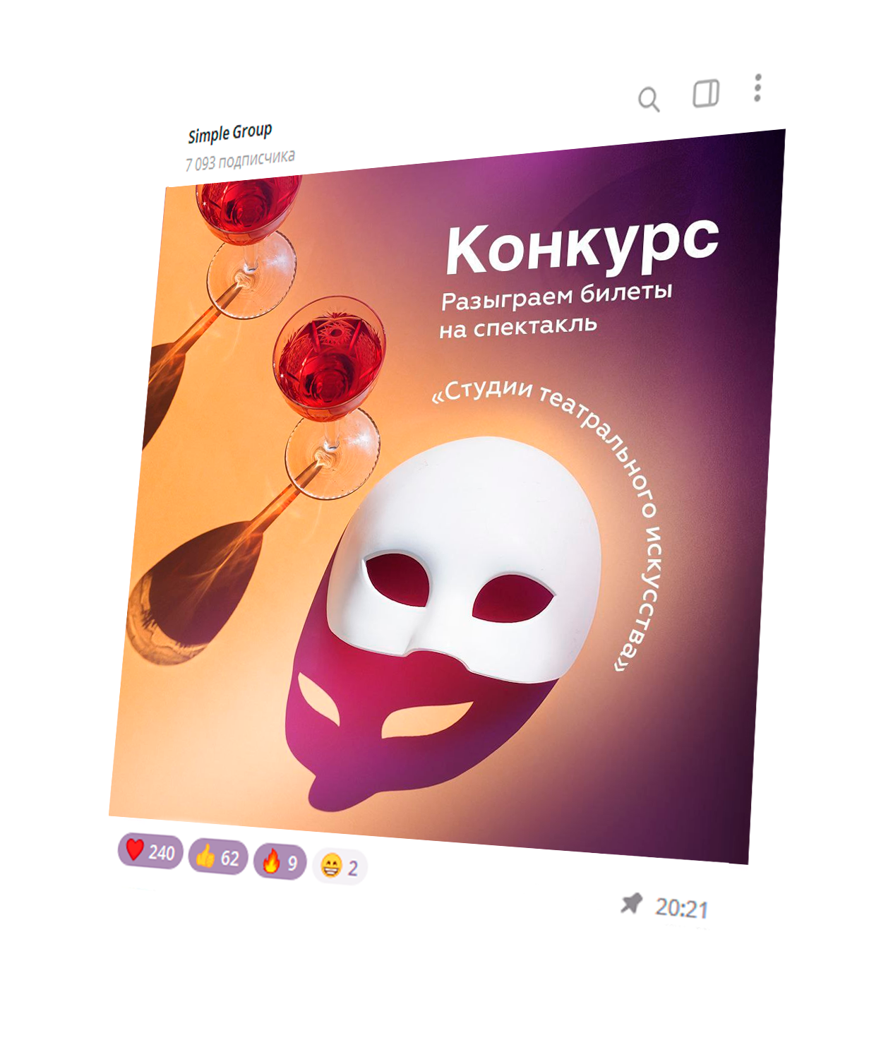 On the brand's Telegram channel we launched an activity called “Cultural March”. The channel’s subscribers rolled virtual emoji dice in the comments to win tickets to the theater. The activity proved a success with an ERR of 31,44%.